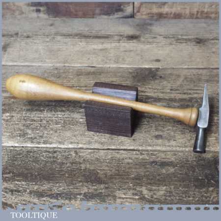 Vintage German jewellers cross pein hammer with bulbous boxwood handle, in good used condition. Marked Foreign which was common practice for German tools before WW2.