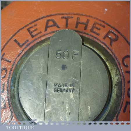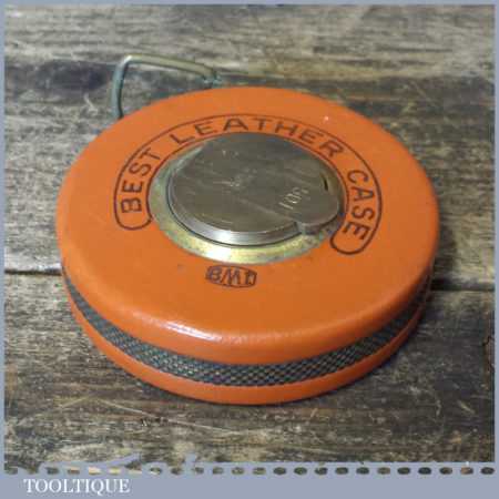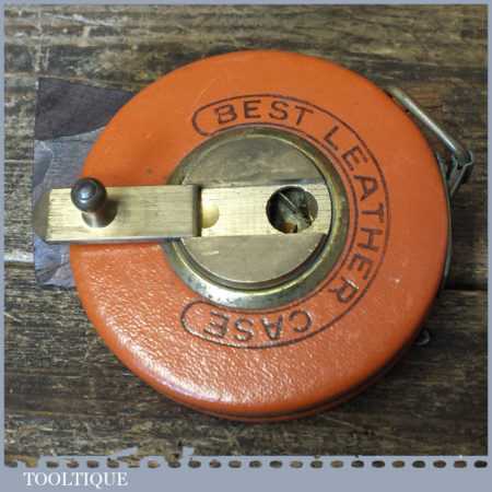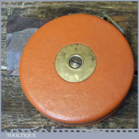 Vintage German made 50ft leather bound winding tape measure in good used condition.