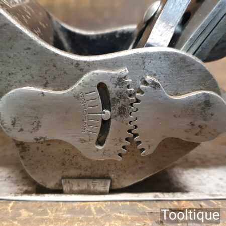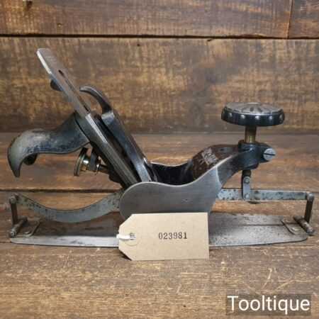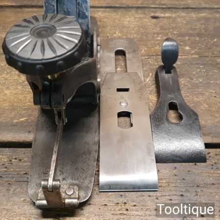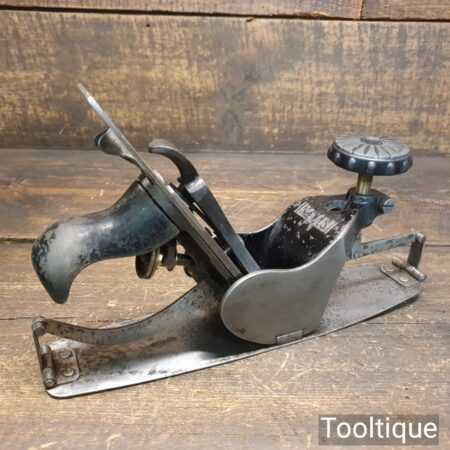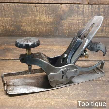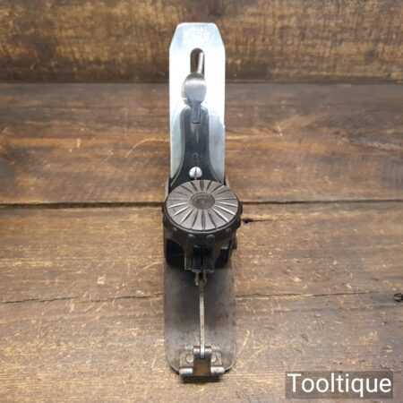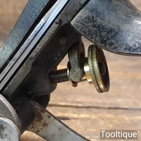 Vintage German No: 113 circular compass plane fitted with a later Stanley iron, fully refurbished and sharpened ready for use and in good used condition. All the components have been thoroughly cleaned and move freely. As you can see this has a Bakelite adjustment knob which was a material readily used in between the 1930’s – 50’s so the plane does have some age to it.