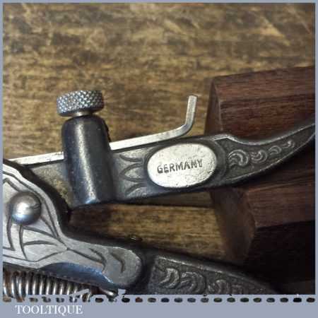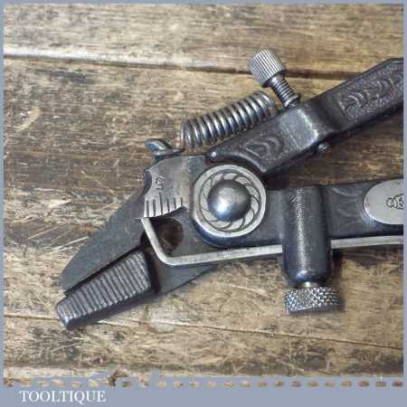 Vintage German saw set in good used condition. These tools were designed specifically for early Sandvik saws which were extremely brittle, so to avoid snapping the teeth when setting, they just turned over the tip of the tooth.