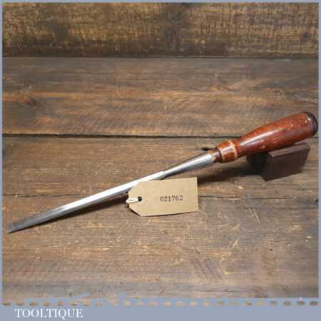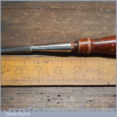 Vintage Greenlee, Rockford, Illinois USA carpenter’s 3/8” socketed bevel edge chisel with buffered hardwood handle in good used condition, fully refurbished sharpened and honed ready for use.