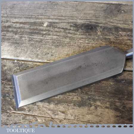 Vintage Greenlee USA 2” wide bevel edge socket paring chisel in good used condition. The chisel has been flapped flat to the underside to ensure it can be sharpened and honed on a flat stone.