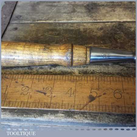 The chisel has been checked to ensure the tang is seated properly and the handle is solid and fit for use. All refurbished chisels are water cooled during the sharpening process to ensure the tempering is not affected. These old cast steel chisels are hand forged and far superior in quality because of the high carbon steel that was used which produces a keener edge, this was also generally used throughout the full length
