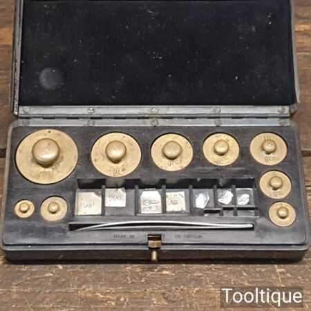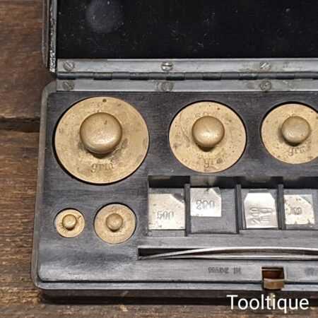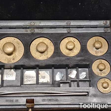 Vintage Griffin & Tatlock Ltd Apothecary Brass Weight set in grams with Tweezers in Bakelite Box.