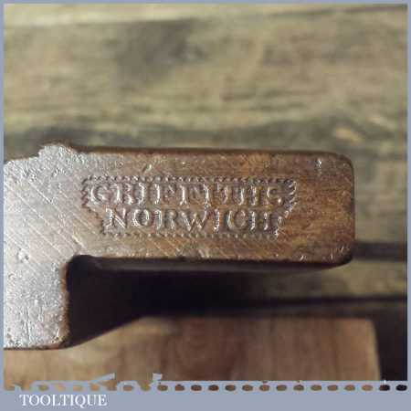 Vintage Griffiths of Norwich grooving beechwood moulding plane, in good used condition. Note: The iron has been put in backwards.