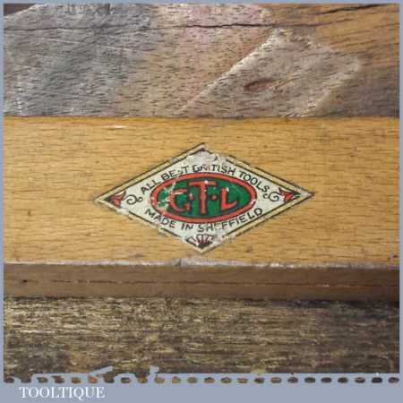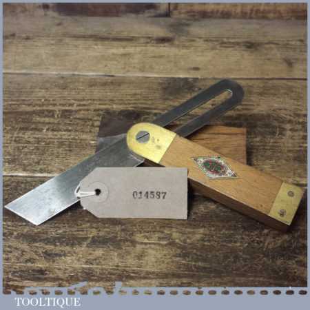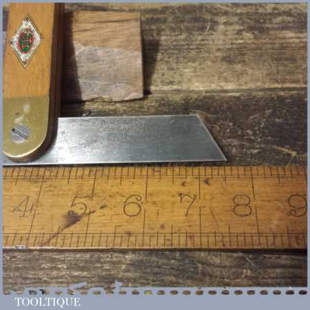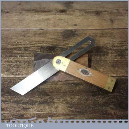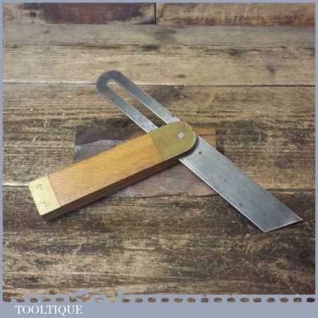 Vintage GTL beechwood and brass sliding bevel with 7 ½” blade in good used condition and ready for use. Retains its original decal label.