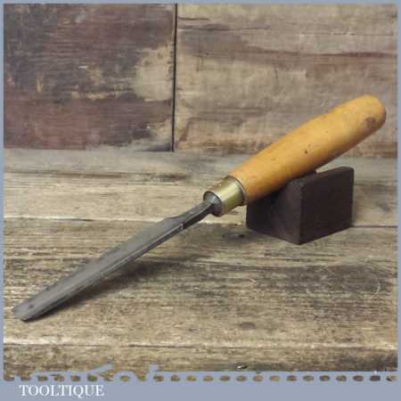 Vintage GTL carpenter’s 1/2” gouge chisel with beechwood handle in good used condition, fully refurbished sharpened and honed ready for use.