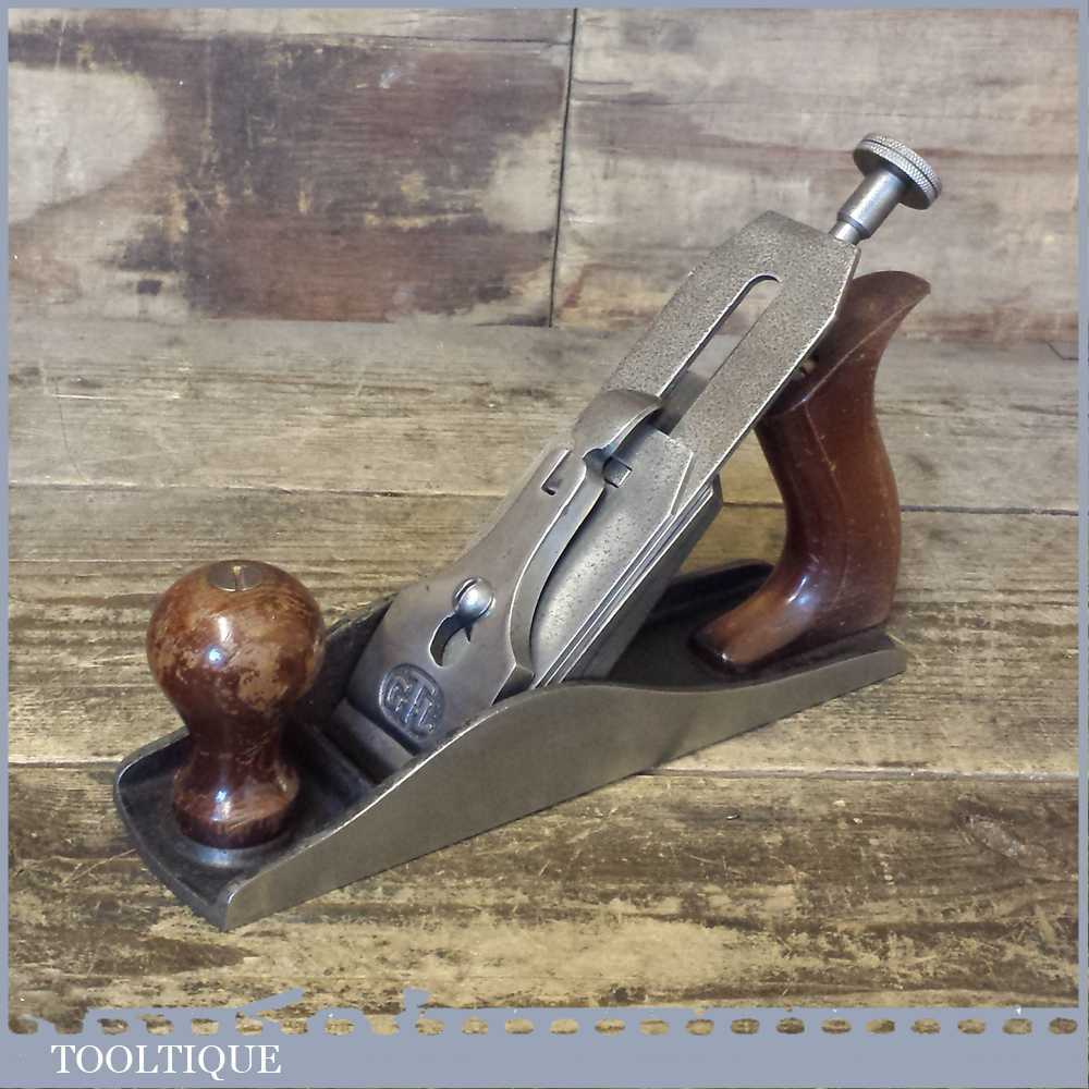 Vintage GTL cast iron smoothing plane fully refurbished and ready to use. The plane has been lapped flat as these were notoriously uneven so has been improved for anyone wishing to use it. This is a good example of how these should be after setting them up correctly.