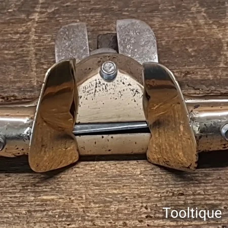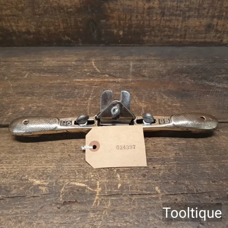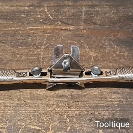 Vintage Gunmetal Patternmakers Copy of a No: 65 Chamfer Spokeshave refurbished ready for use and in good used condition. Note: Iron does adjust to be straight across throat, I must have been having a moment putting it together.