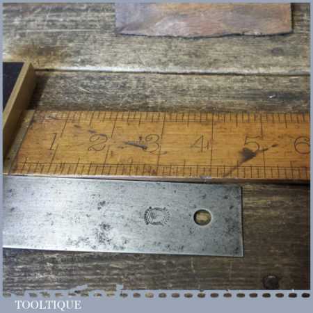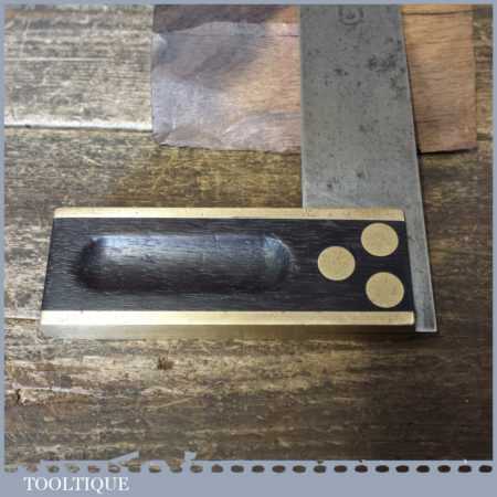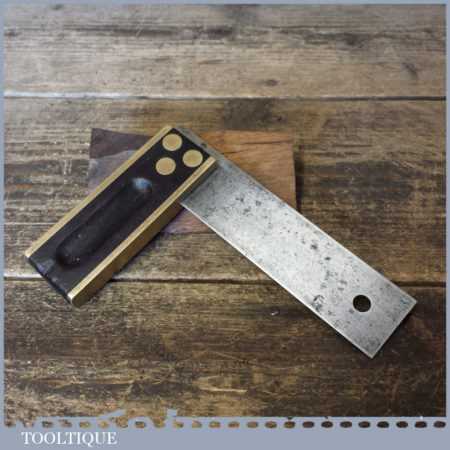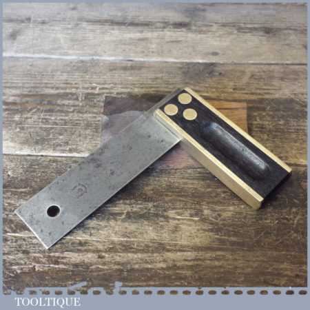 Attractive vintage Gussstahl carpenters rosewood and double brass 6” try square in good used condition. This is quite unusual in its construction and a very nice tool.