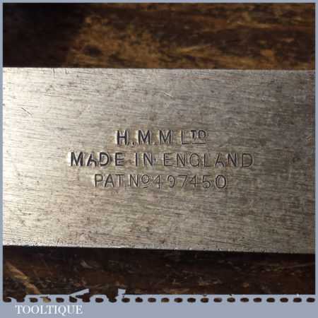 Vintage H.H.M. Ltd engineer’s precision set square with 6” blade, in good used condition.