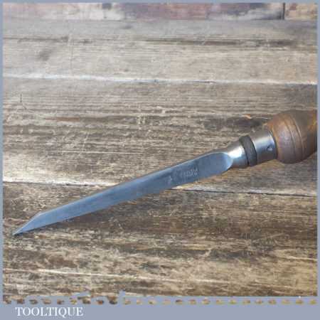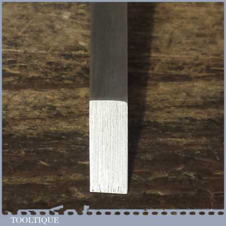 The chisel has been checked to ensure the tang is seated properly and the handle is solid and fit for use. All refurbished chisels are water cooled during the sharpening process to ensure the tempering is not affected. These old cast steel chisels are hand forged and far superior in quality because of the high carbon steel that was used which produces a keener edge, this was also generally used throughout the full length.