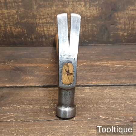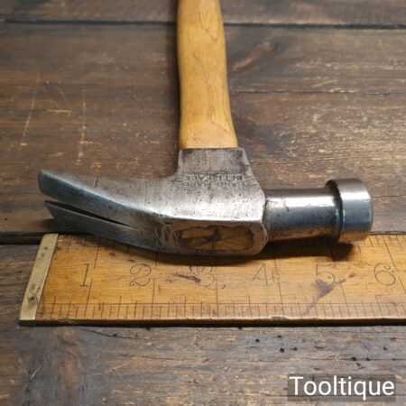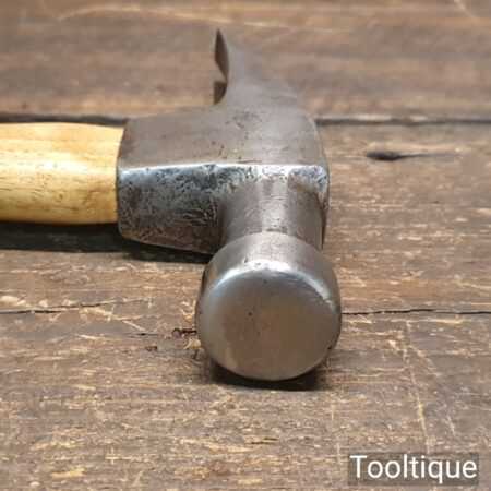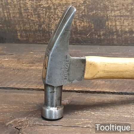 Vintage handmade Bell Face cast steel claw hammer with wooden handle in good used condition.