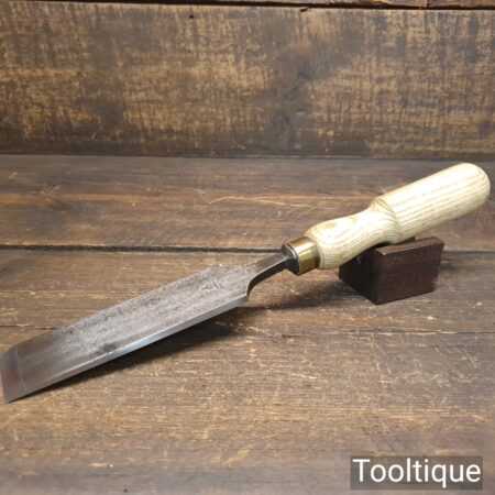 The chisel has been checked to ensure the tang is seated properly and the handle is solid and fit for use. All refurbished chisels are water cooled during the sharpening process to ensure the tempering is not affected.