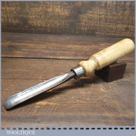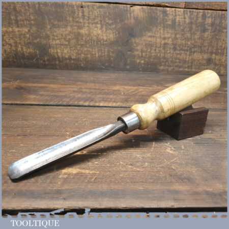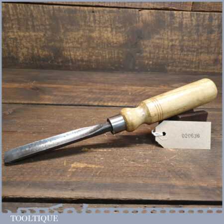 Vintage heavy duty 5/8” straight woodcarving gouge chisel with ash handle in good used condition, fully refurbished sharpened and honed ready for use.