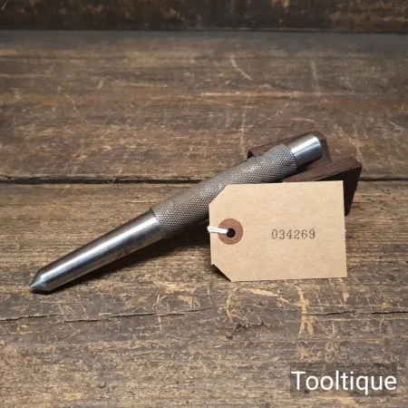 Vintage Heavy Duty Moore & Wright Centre punch refurbished ready for use and in good used condition. Note: Point Sharpened – Partial makers mark due to Redressing head to remove bur.