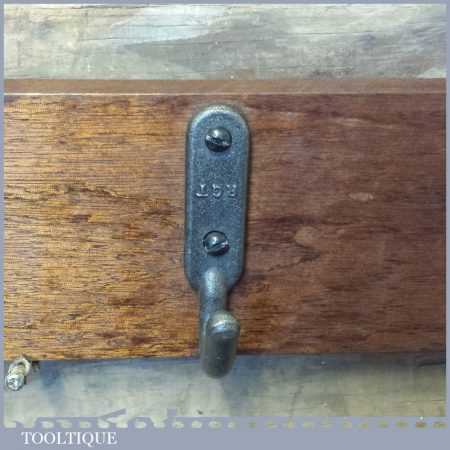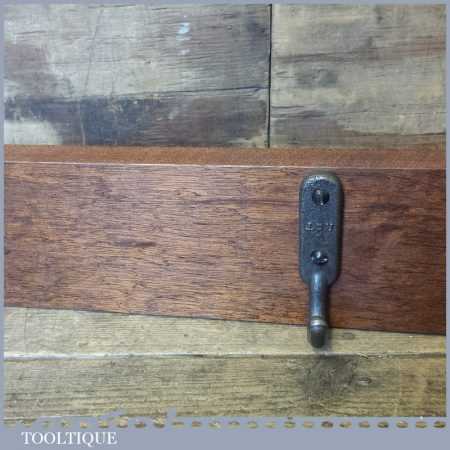 Mahogany 40” (1m) coat rail with five cast steel hangers in good condition.