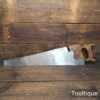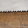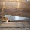 Vintage Henry Disston Canada 24” Rip Saw with 6 Tpi, fully refurbished ready for use and in good used condition. The saw has been sharpened Rip with a relaxed rake at the toe for easy start progressively increasing in aggressiveness towards the handle. Note: Canadian Disston’s didn’t have the same reputation as the earlier Philadelphian models but this wasn’t to do with the steel, it was more to do with the wooden handle. The saw has been thoroughly cleaned, jointed, resharpened and set by hand so that all the hard work of getting an old vintage saw right has been undertaken. We do this so that the next sharpening is easier and no more than a quick freshen up would be required. Those who are familiar with sharpening will know this is no small job and requires skill, effort and time to achieve good results.