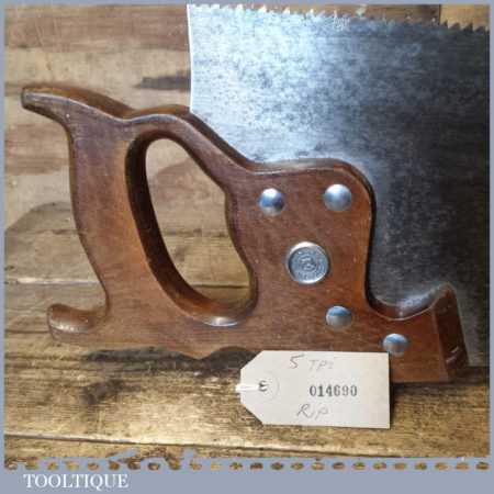 Vintage Henry Disston, Canada 26” rip saw with 5 tpi, fully refurbished and sharpened ready for use. These may not have the same reputation as the early Philly saws but they certainly compete in quality with the best of the rest.