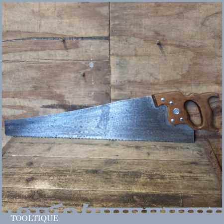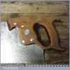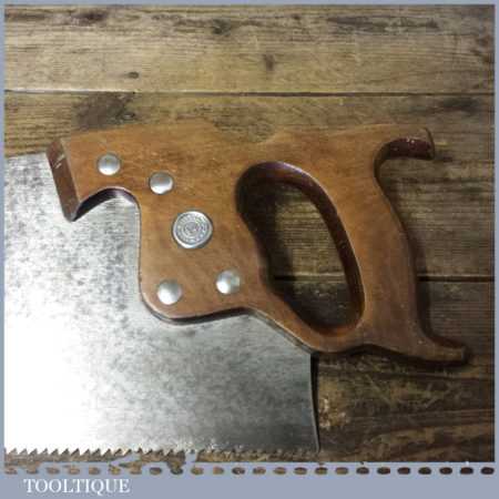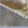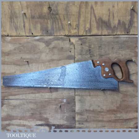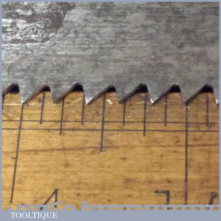 The saw has been thoroughly cleaned, jointed, resharpened and set by hand so that all the hard work of getting an old vintage saw right has been undertaken. We do this so that the next sharpening is easier and no more than a quick freshen up would be required. Those who are familiar with sharpening will know this is no small job and requires skill, effort and time to achieve good results.