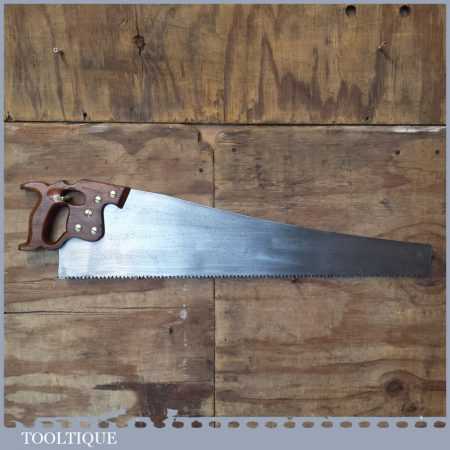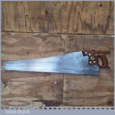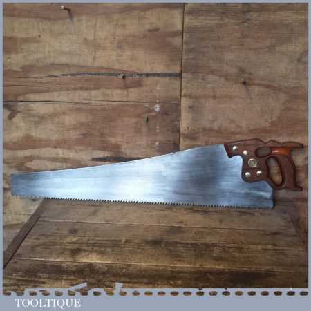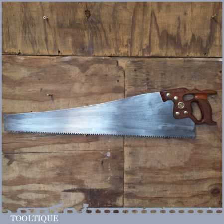 Vintage 28” Henry Disston D8 Philadelphia 28” rip saw with 3½ tpi, sharpened ready for use. This old saw has the thumb hole grip in the applewood handle for a two-handed thrust. Note: Old timers often regarded these old Philly Disston’s as the best saws ever produced by any saw maker, before or since.