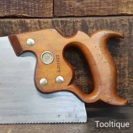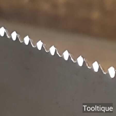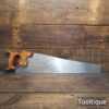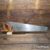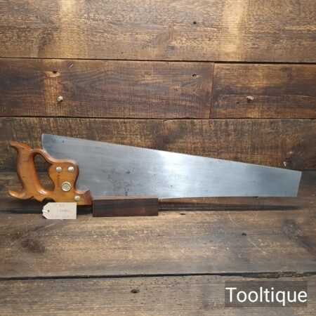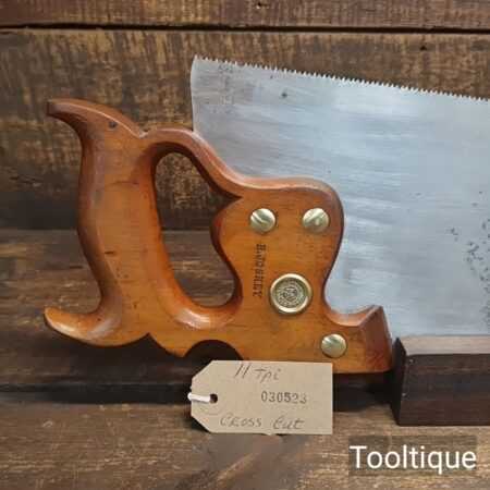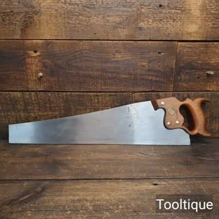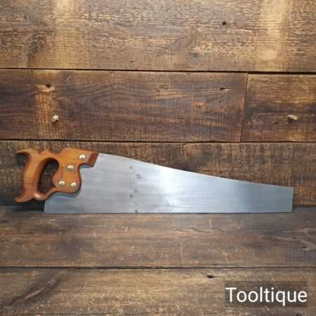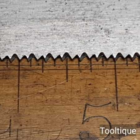 The saw has been thoroughly cleaned, jointed, resharpened and set by hand so that all the hard work of getting an old vintage saw right has been undertaken. We do this so that the next sharpening is easier and no more than a quick freshen up would be required. Those who are familiar with sharpening will know this is no small job and requires skill, effort and time to achieve good results