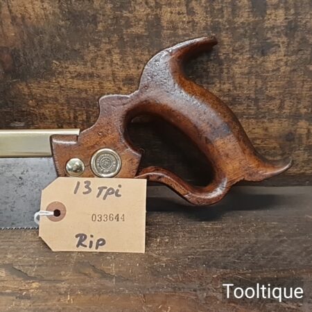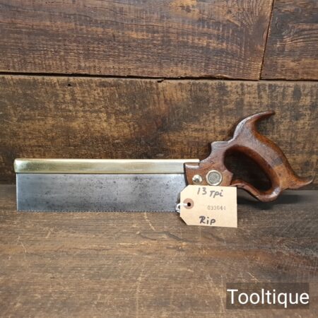 Vintage Henry Disston Philadelphia 13 Tpi Dovetail Saw with an Applewood Handle, sharpened Rip and refurbished ready for use and in good used condition. Note: Tight fitting Handle. The saw has been thoroughly cleaned, jointed, resharpened and set by hand so that all the hard work of getting an old vintage saw right has been undertaken. We do this so that the next sharpening is easier and no more than a quick freshen up would be required. Those who are familiar with sharpening will know this is no small job and requires skill, effort and time to achieve good results