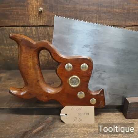 Vintage Henry Disston Philadelphia 26” Rip saw 6 Tpi with an applewood handle, fully refurbished & sharpened ready for use and in good used condition. The saw has also been sharpened with a graduated rake geometry to progressively increase in in aggressiveness towards the handle. The steel in these Disston saws is superb, they are hard on the file yet supple enough to set and in my opinion has never been replicated.