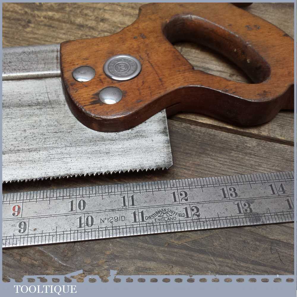 Vintage Henry Disston Philadelphia USA 12” steel back tenon saw in good used condition. The saw is sharp and is nice and straight, ready for use. Those who may not know about the reputation of this era of Disston saws should be aware that many woodworkers regarded these as the best ever saw produced by any company before and since.