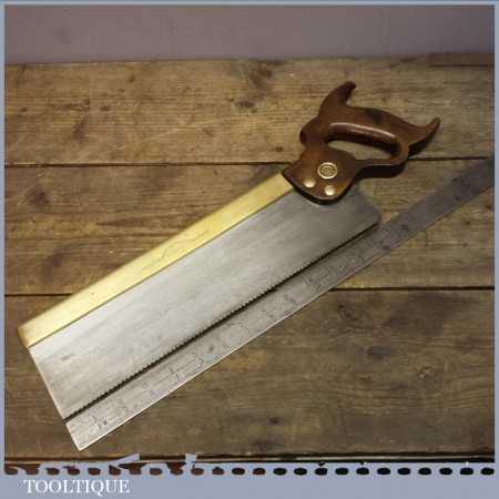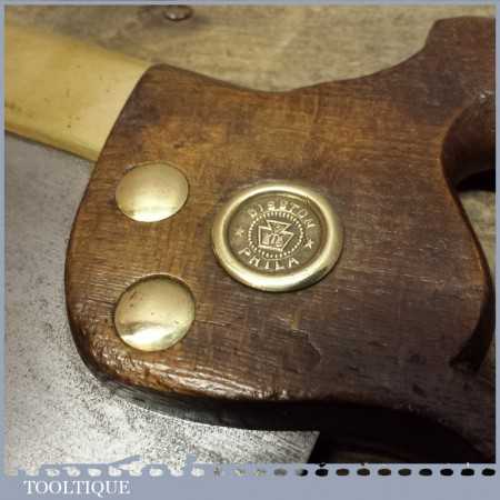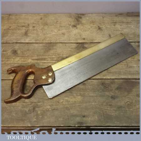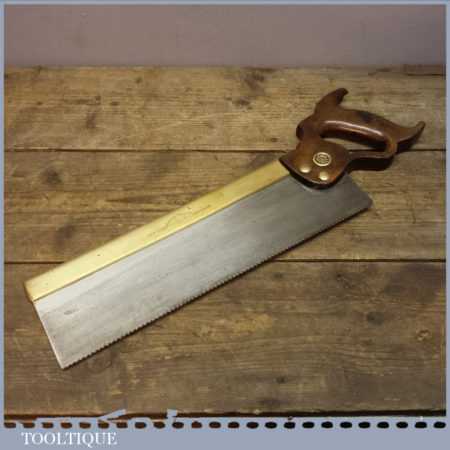 Vintage Henry Disston Philadelphia USA 14” brass back bench saw with approx 12 teeth per inch in good overall condition – although it does have a chip to the handle (See images)