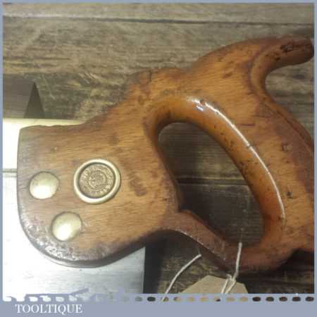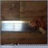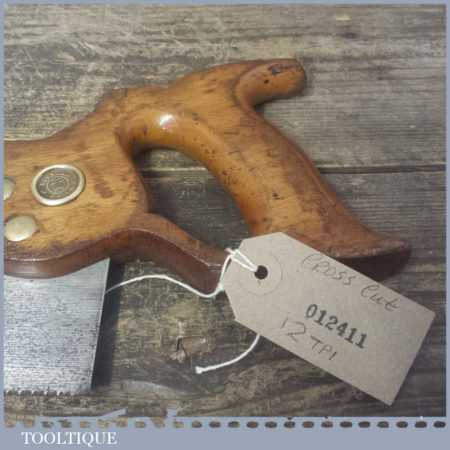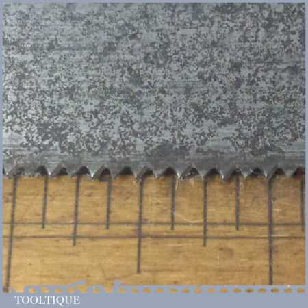 The saw has been thoroughly cleaned, jointed, resharpened and set by hand so that all the hard work of getting an old vintage saw right has been undertaken. We do this so that the next sharpening is easier and no more than a quick freshen up would be required. Those who are familiar with sharpening will know this is no small job and requires skill, effort and time to achieve good results.