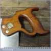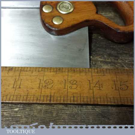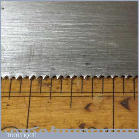 The saw has been thoroughly cleaned, jointed, resharpened and set by hand so that all the hard work of getting an old vintage saw right has been undertaken. We do this so that the next sharpening is easier and no more than a quick freshen up would be required. Those who are familiar with sharpening will know this is no small job and requires skill, effort and time to achieve good results.