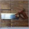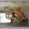 The saw has been thoroughly cleaned including under the handle, jointed, resharpened and set by hand so that all the hard work of getting an old vintage saw right has been undertaken. We do this so that the next sharpening is easier and no more than a quick freshen up would be required. Those who are familiar with sharpening will know this is no small job and requires skill, effort and time to achieve good results.