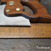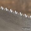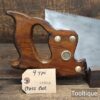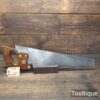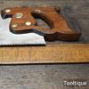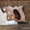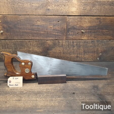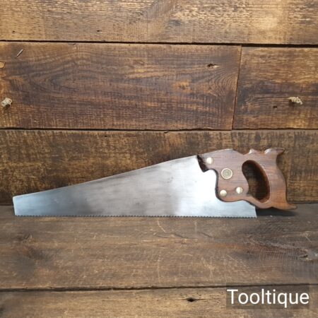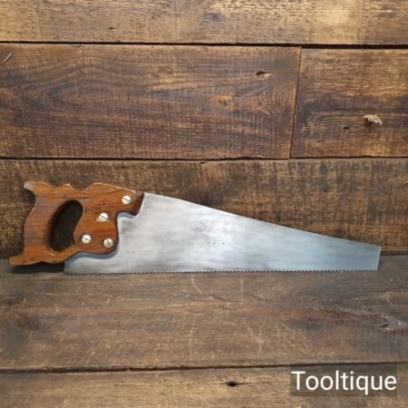 Vintage Henry Disston USA 18” Cross Cut Panel Saw with 9 Tpi, refurbished & Sharpened ready for use and in good used condition. Note: Sharpened using all three disciplines of Rake, Slope & Fleam more accurate and efficient cut. The saw has been thoroughly cleaned, jointed, resharpened and set by hand so that all the hard work of getting an old vintage saw right has been undertaken. We do this so that the next sharpening is easier and no more than a quick freshen up would be required. Those who are familiar with sharpening will know this is no small job and requires skill, effort and time to achieve good results.