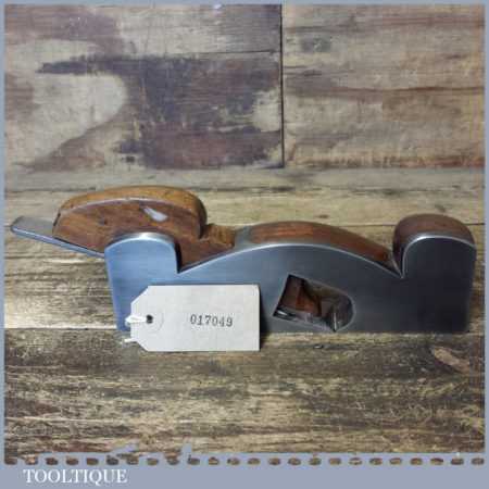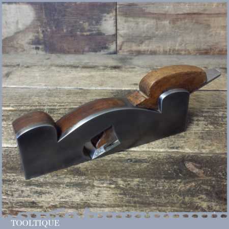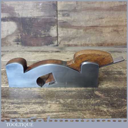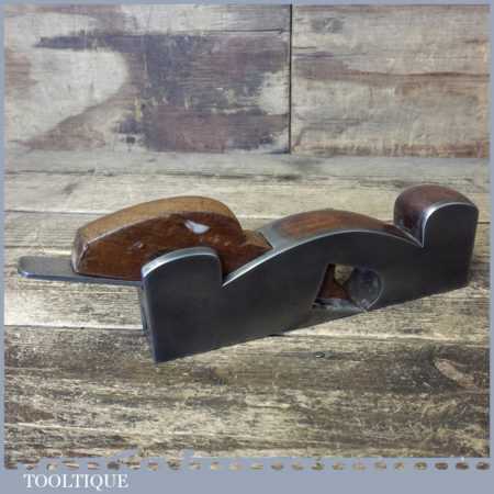 Vintage Henry Slater malleable steel shoulder plane with mahogany infill and wedge, in good used condition. Note: iron stamped J. W. Ward of Sheffield. No Makers name stamp but is stamped with the letter M which was a common trait for Slater along with the overall shape and quality.