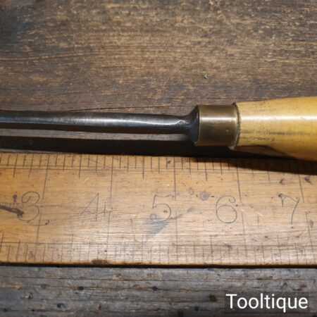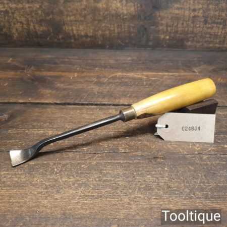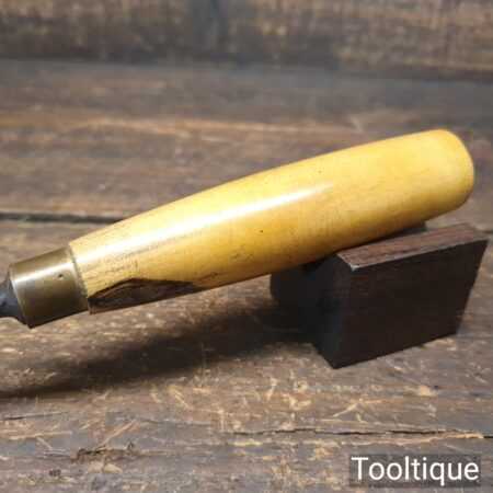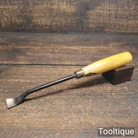 Vintage Henry Taylor ⅞” woodcarving spoon gouge chisel with boxwood handle, in good used condition, fully refurbished sharpened and honed ready for use.