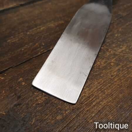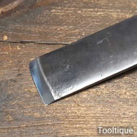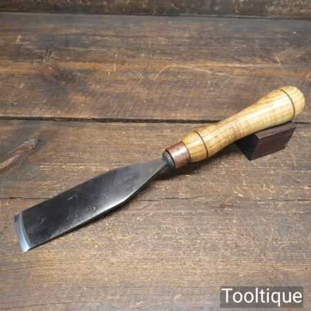The chisel has been checked to ensure the tang is seated properly and the handle is solid and fit for use. All refurbished chisels are water-cooled during the sharpening process to ensure the tempering is not affected.