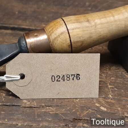 The chisel has been checked to ensure the tang is seated properly and the handle is solid and fit for use. All refurbished chisels are water-cooled during the sharpening process to ensure the tempering is not affected.