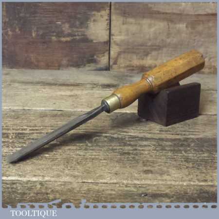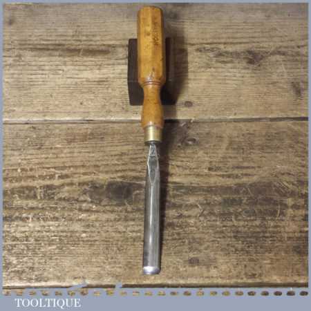Vintage Henry Taylor Ltd. 1/2” straight No: 7 wood carving gouge chisel with London pattern beechwood handle in good used condition, fully refurbished sharpened and honed ready for use.