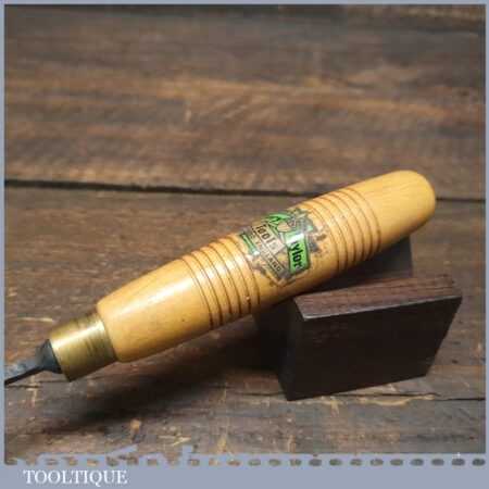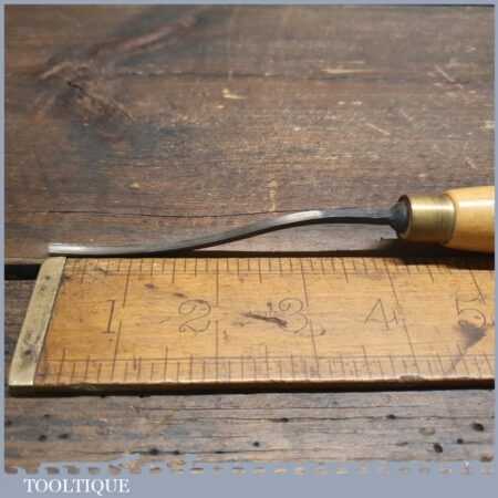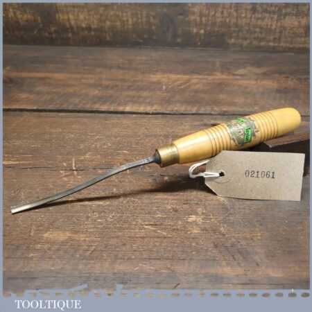 Vintage Henry Taylor 5/32” curved woodcarving gouge chisel with beechwood handle in good used condition, fully refurbished sharpened and honed ready for use.