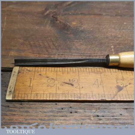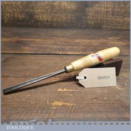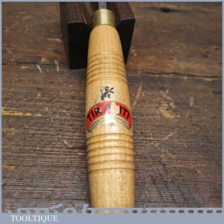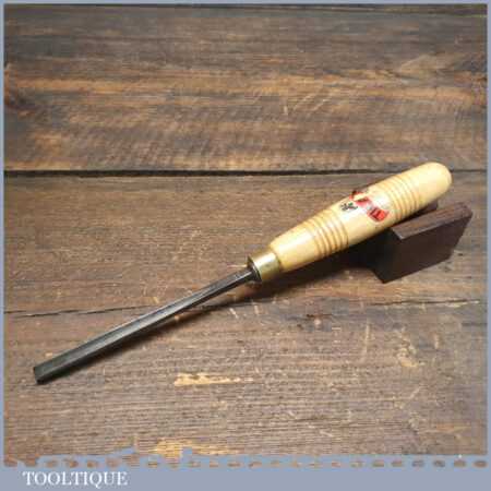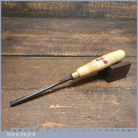 Vintage Henry Taylor ‘Acorn Brand’ 1/4” No: 39 straight wood carving “V” parting chisel with beechwood handle in good used condition, fully refurbished sharpened and honed ready for use. Note: Tiranti replacement handle used