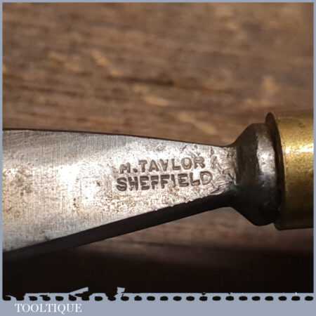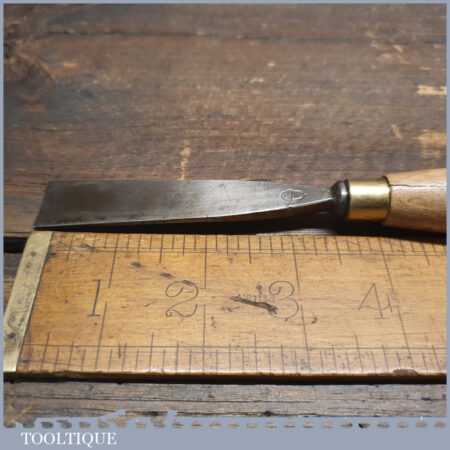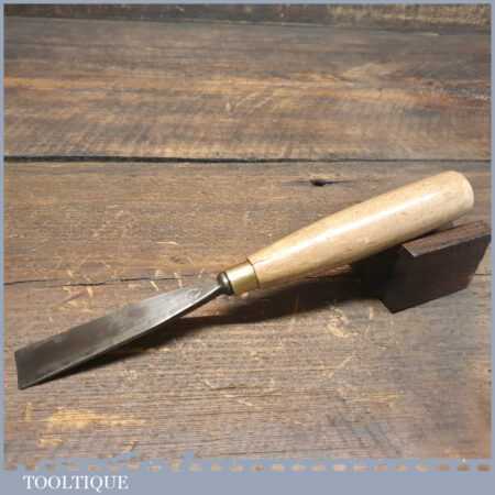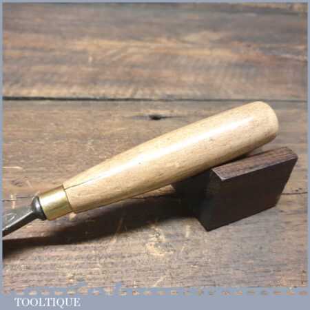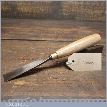 Vintage Henry Taylor ‘Acorn Brand’ 3/4” straight woodcarving gouge chisel with beechwood handle in good used condition, fully refurbished sharpened and honed ready for use. Note: Treated crack where the chisel was re-handled, solid and won’t affect its use.
