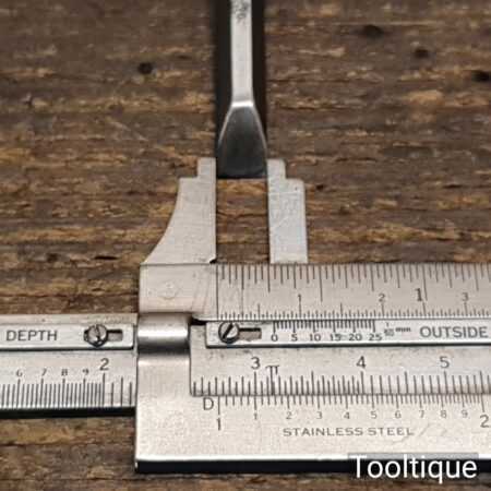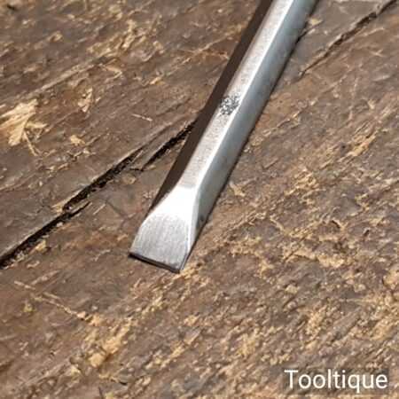 The chisel has been checked to ensure the tang is seated properly and the handle is solid and fit for use. All refurbished chisels are water cooled during the sharpening & flattening process to ensure the tempering is not affected