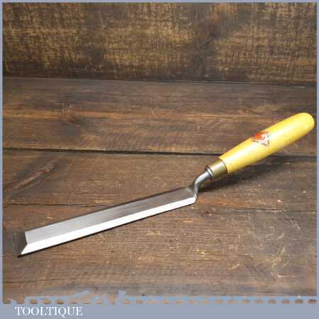 Vintage Henry Taylor Diamic pattern makers 1 ¼” cranked bevel edge paring chisel with beechwood handle in good used condition, fully refurbished sharpened and honed ready for use. These are like gold dust to find for sale.