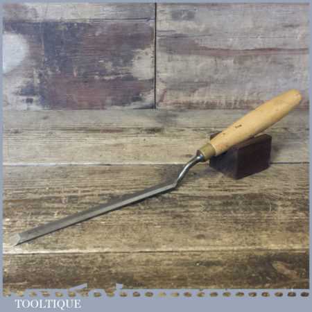 Vintage Henry Taylor pattern makers 1/2“ cranked bevel edge paring chisel with beechwood handle in good used condition, fully refurbished sharpened and honed ready for use. These are a common as hens teeth and really hard to find.