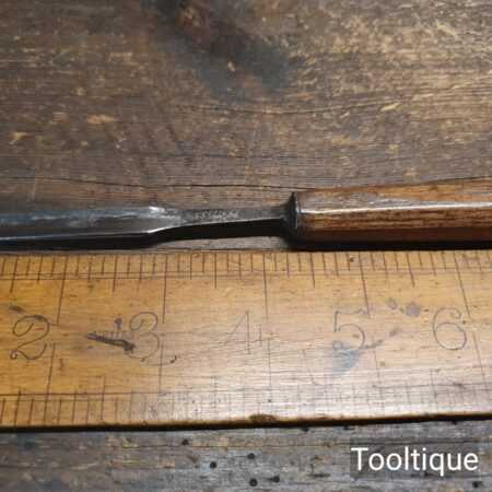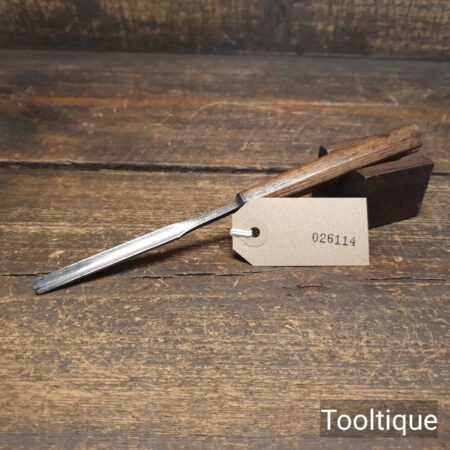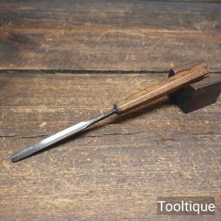 Vintage Herring Bros ⁹⁄₃₂” woodcarving straight gouge chisel with an octagonal mahogany handle in good used condition, fully refurbished sharpened and honed ready for use.