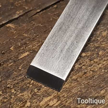 The chisel has been checked to ensure the tang is seated properly and the handle is solid and fit for use. All refurbished chisels are water cooled during the sharpening & flattening process to ensure the tempering is not affected.