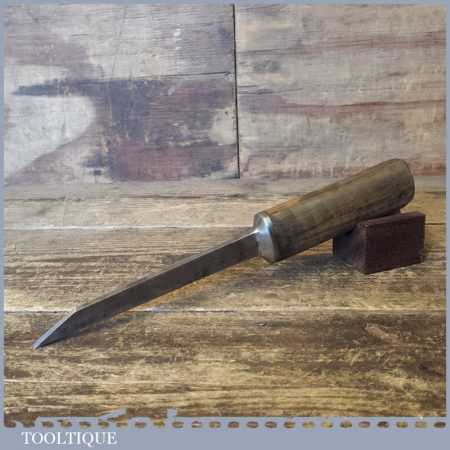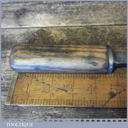 The chisel has been checked to ensure the tang is seated properly and the handle is solid and fit for use. All refurbished chisels are water cooled during the sharpening process to ensure the tempering is not affected. These old cast steel chisels are hand forged and far superior in quality because of the high carbon steel that was used which produces a keener edge, this was also generally used throughout the full length.