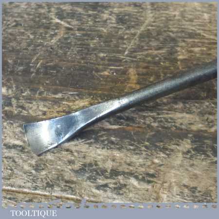 The chisel has been checked to ensure the tang is seated properly and the handle is solid and fit for use. All refurbished chisels are water cooled during the sharpening process to ensure the tempering is not affected. These old cast steel chisels are hand forged and far superior in quality because of the high carbon steel that was used which produces a keener edge, this was also generally used throughout the full length.