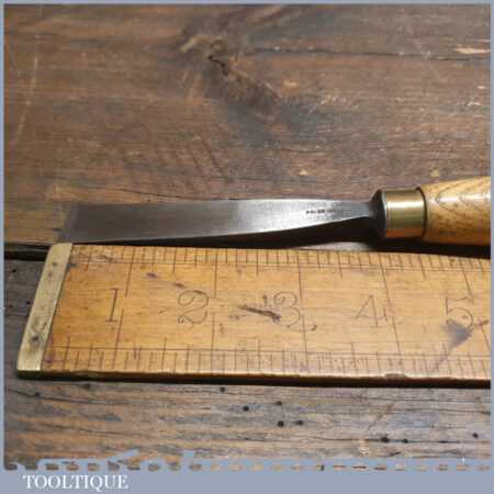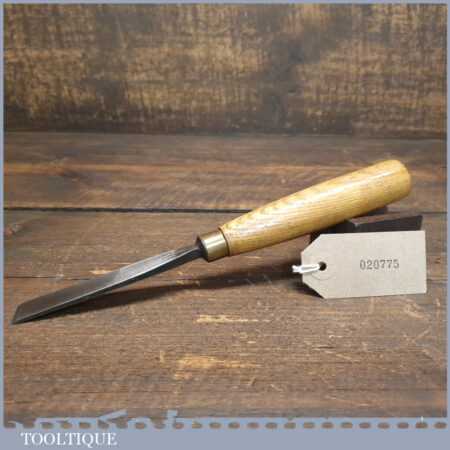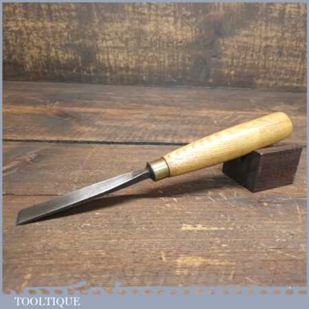 Vintage Herring Bros 5/8” skewed carving chisel with ash handle, in good used condition, fully refurbished, sharpened and honed ready for use.